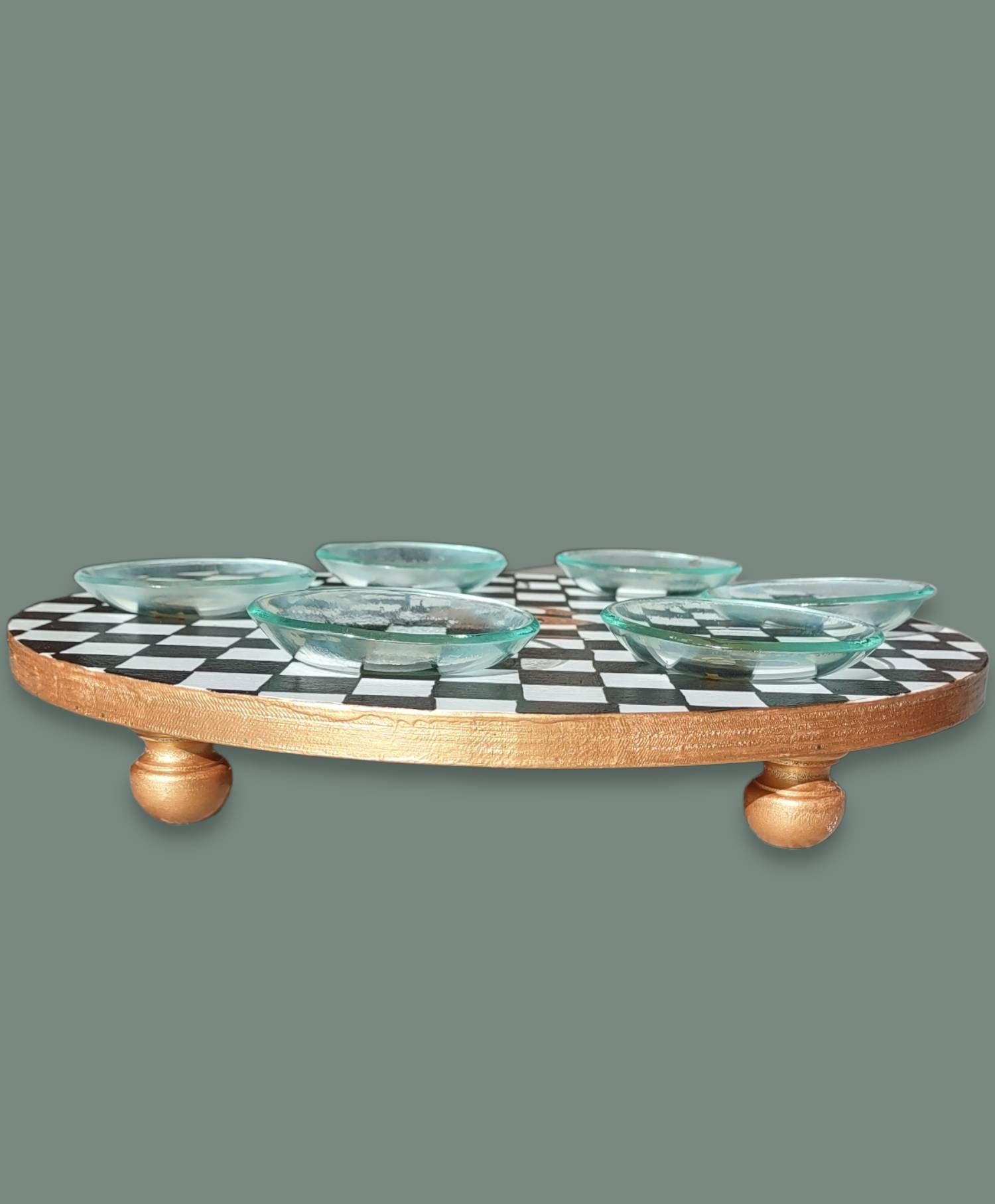 Checkerboard Black White Gold Seder Plate Passover Pesach
