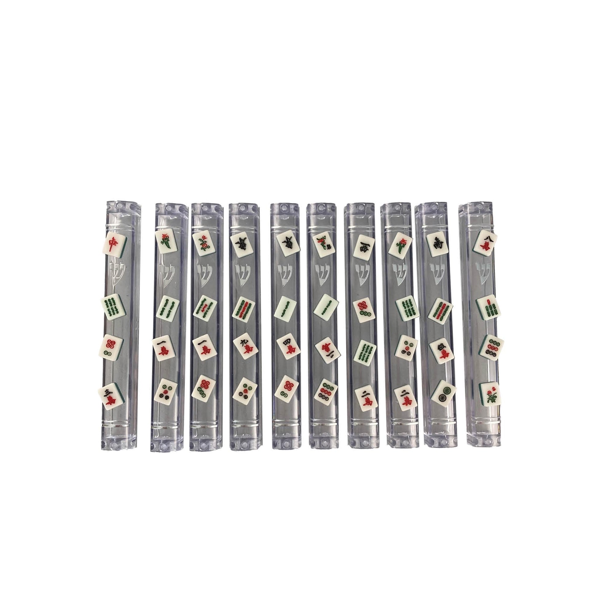 Acrylic mezuzah case with mini mahjong tiles. A perfect gift for the mahjong enthusiast! Exact tiles may vary.