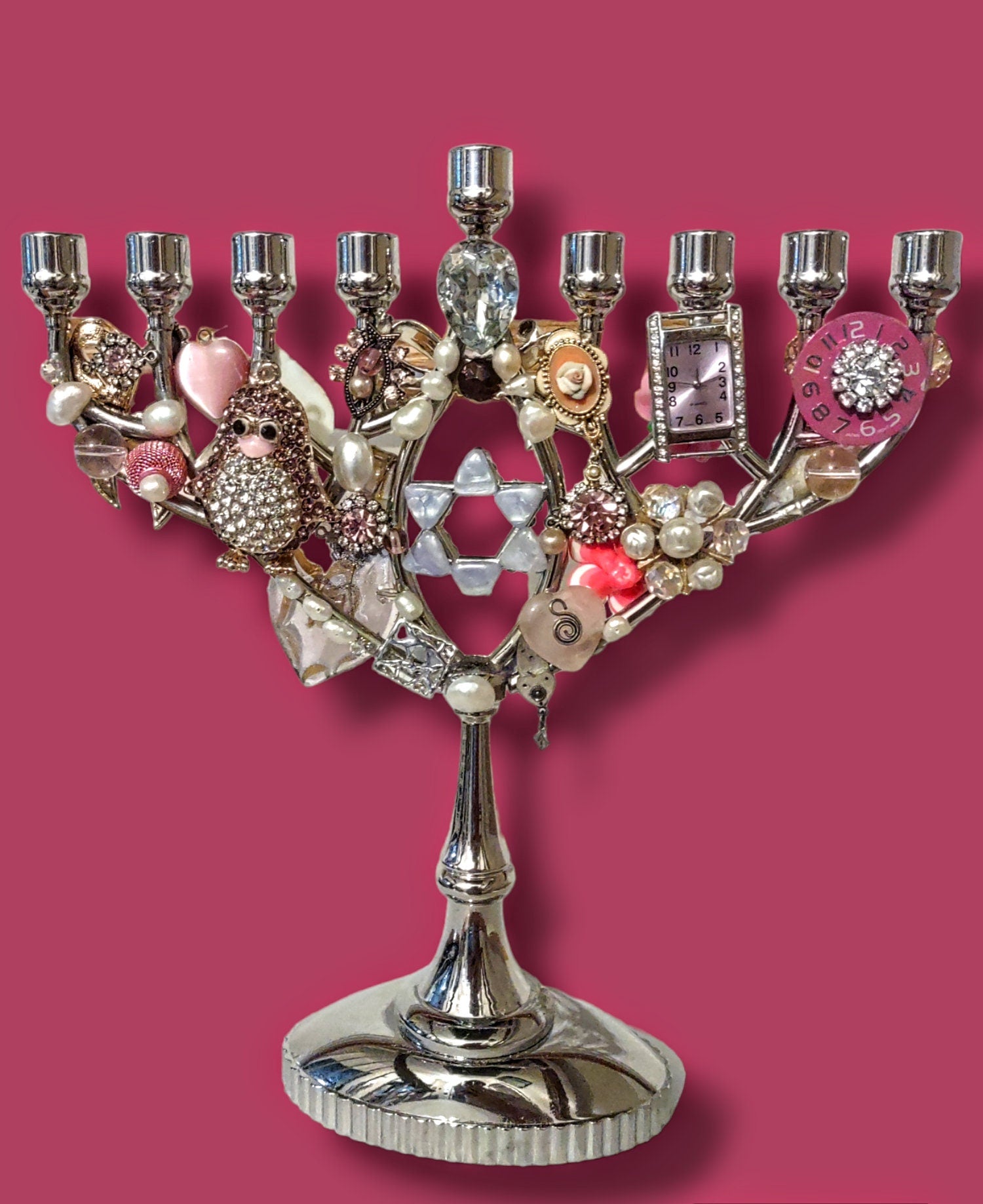 One of kind Jeweled Pink themed Menorah!