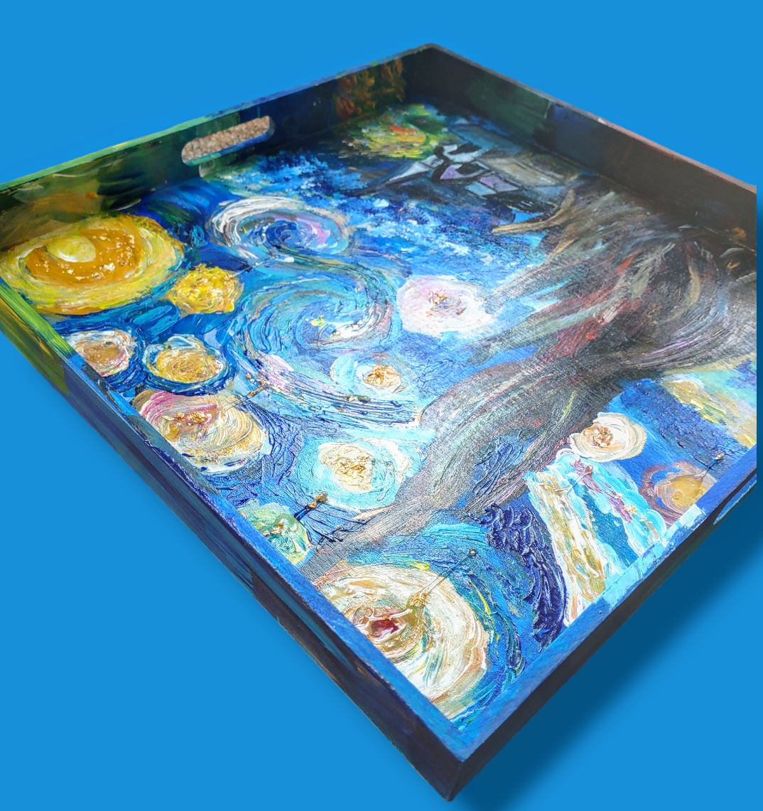 Beautifully Hand-painted Colorful Starry Seder plate.