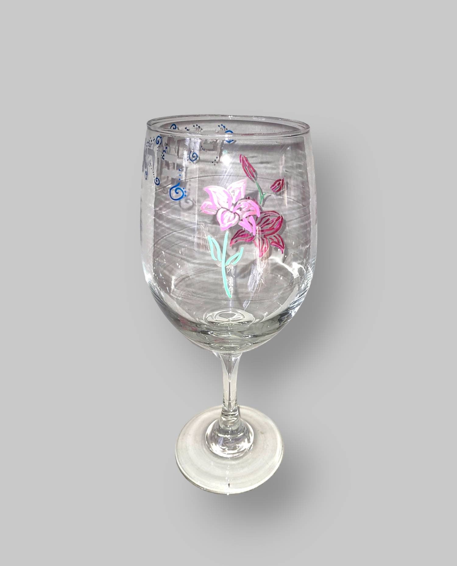 Hand-painted and etched one-of-a-kind wine glasses. Safe to use. Hand wash only.