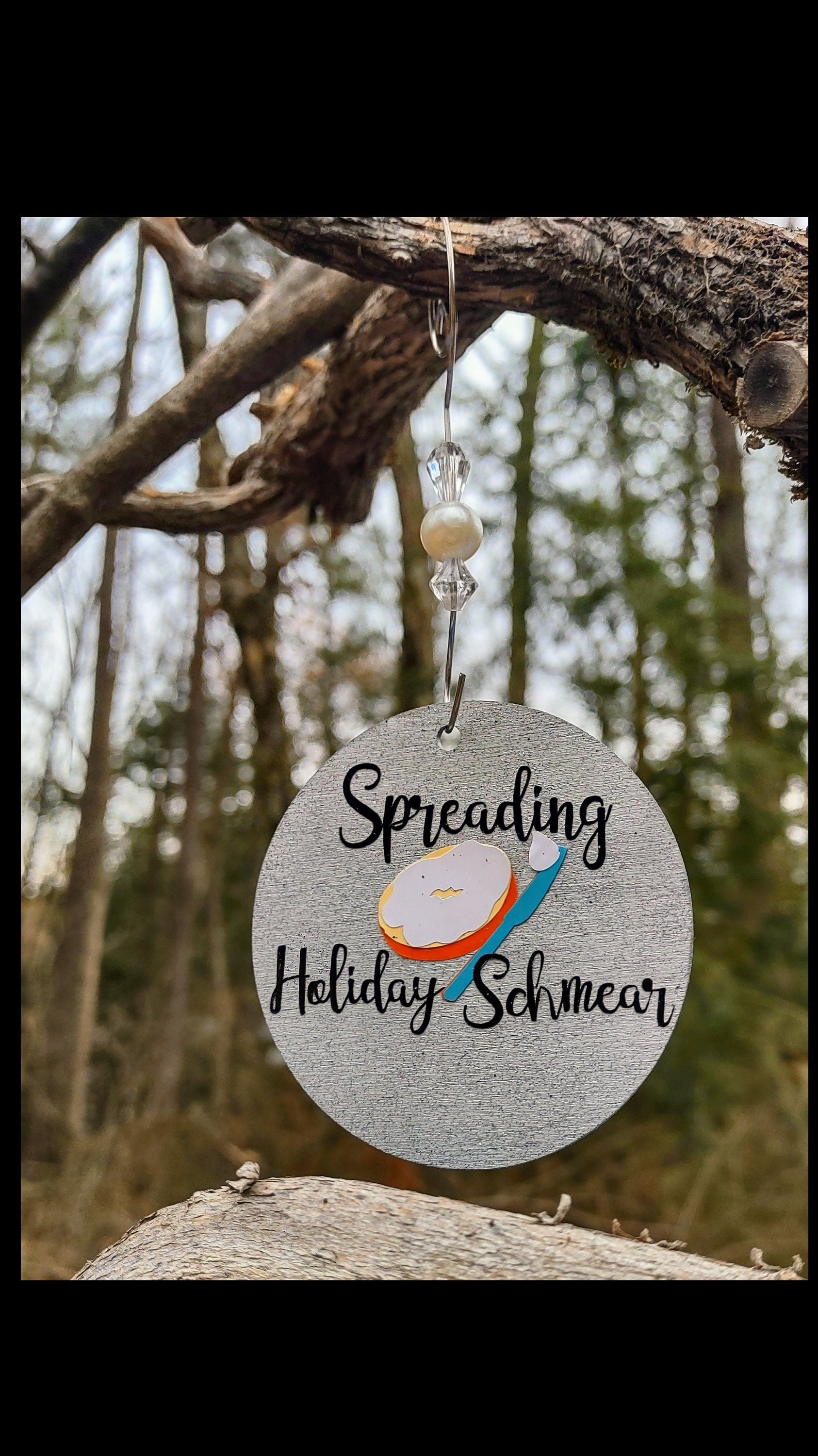 Handcrafted ornament decoration made from wood, acrylic, acrylic paint, wire, beads, and vinyl. Measure 2.5” by 3-6” long See available options
