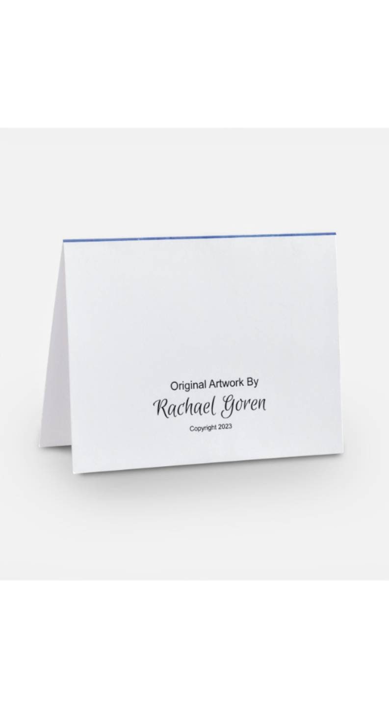 • Size: 5.5 x 4 inches• Comes with a blank, white envelope and clear protective sleeve.