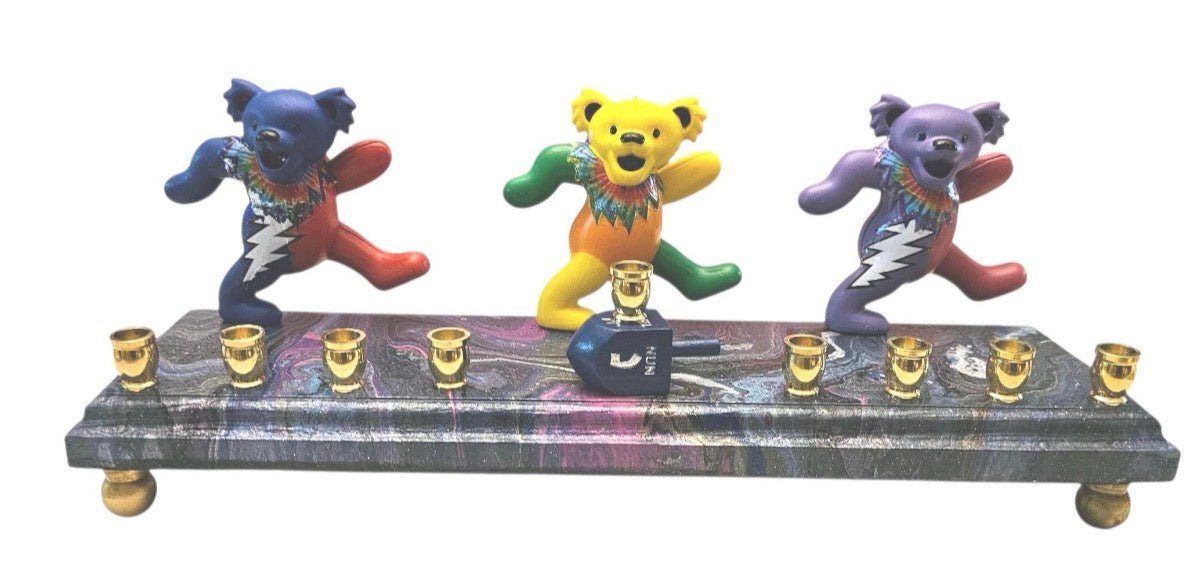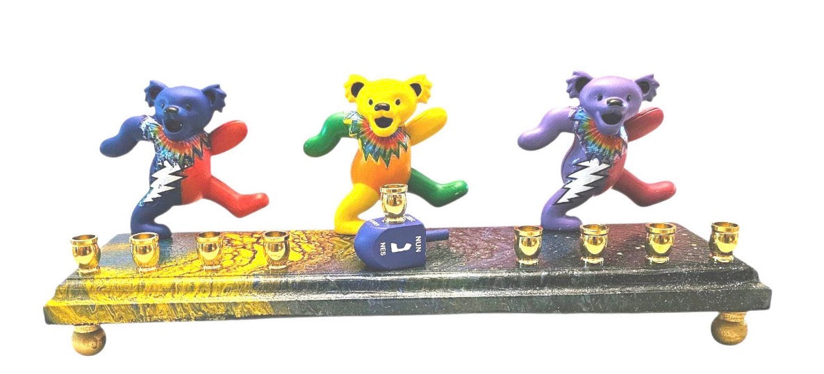 Grateful Dead Dancing Bears psychedelic Collectible Menorah Judaica Hanukkiah Repurposed Figure