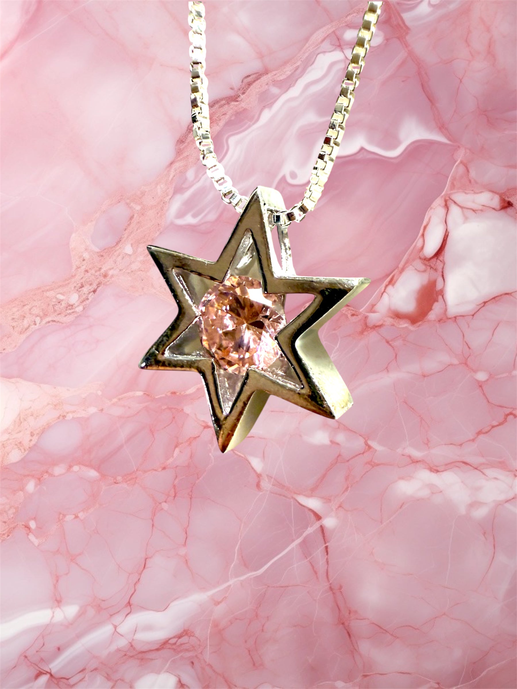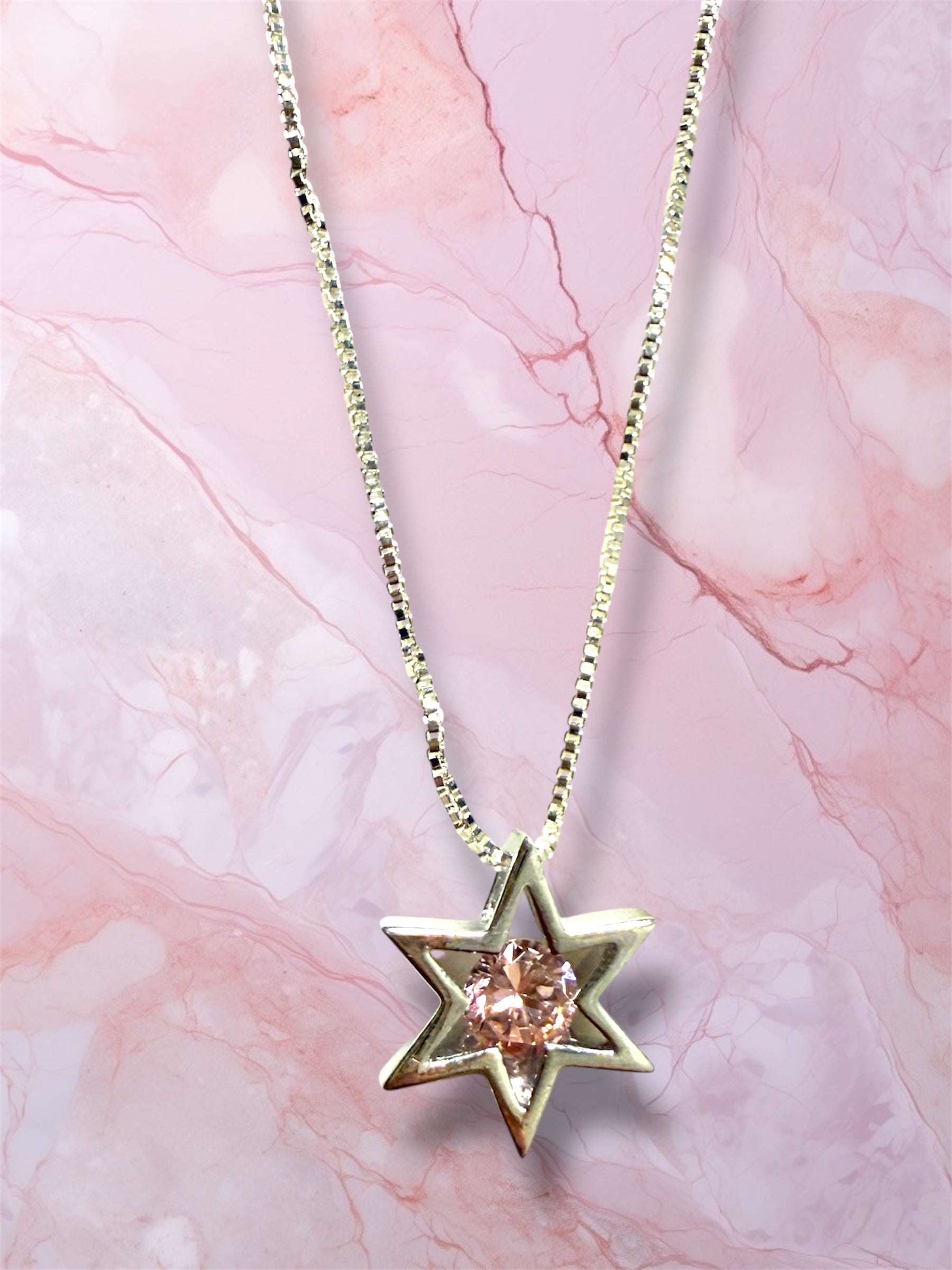 Sterling Silver Modern Star of David pendant with pink gemstone necklace