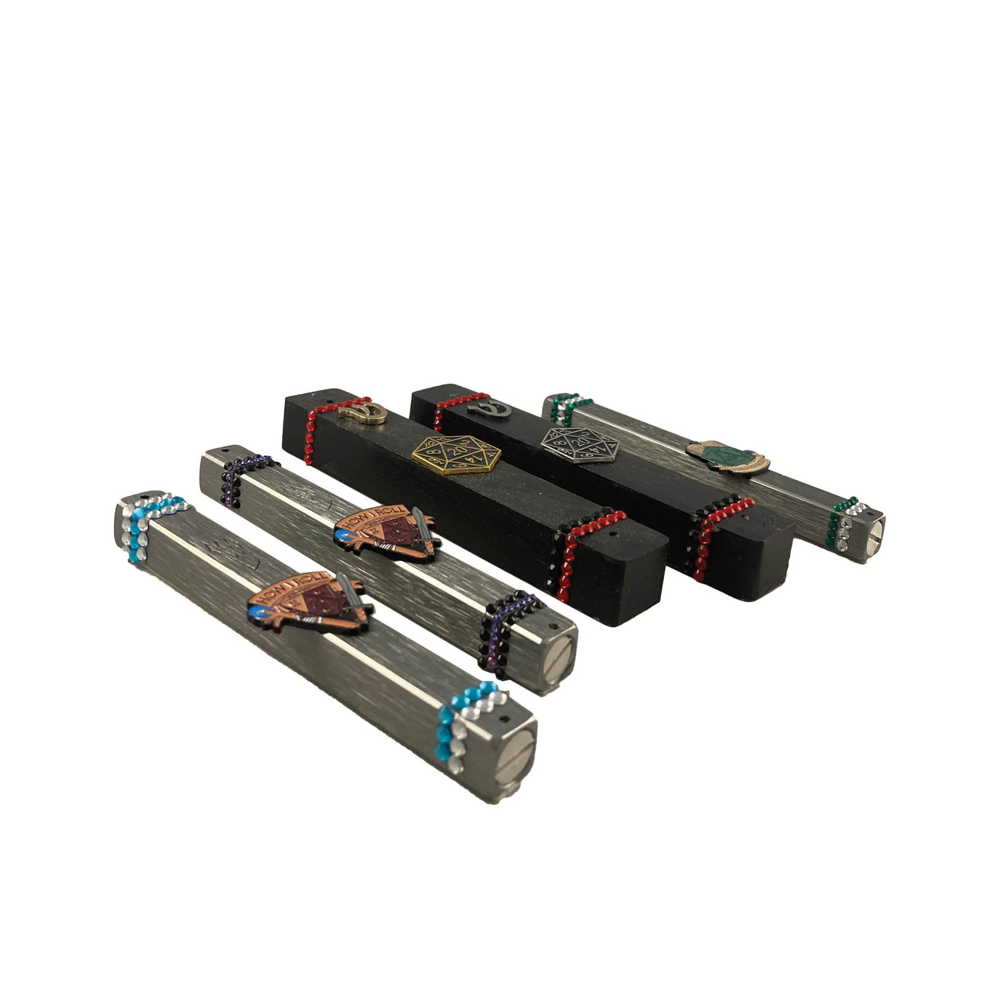 Includes rhinestones, repurposed jewelry, and an aluminum or wood case.