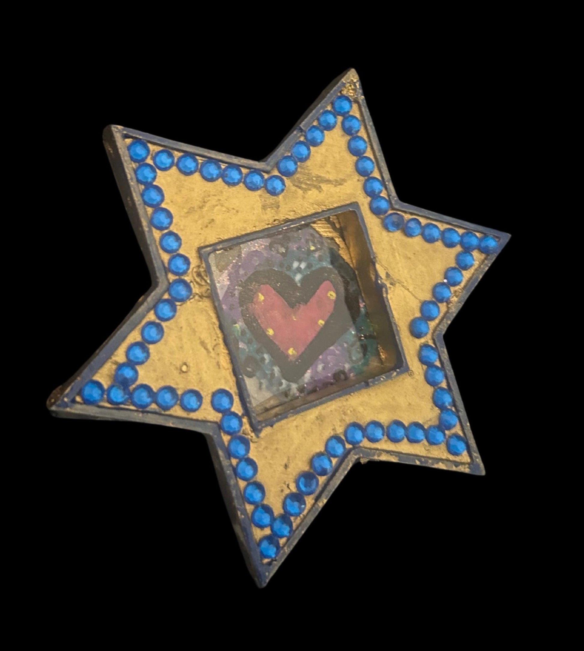 Set of two Star of David magnets with hand-painted heart design and rhinestones.
