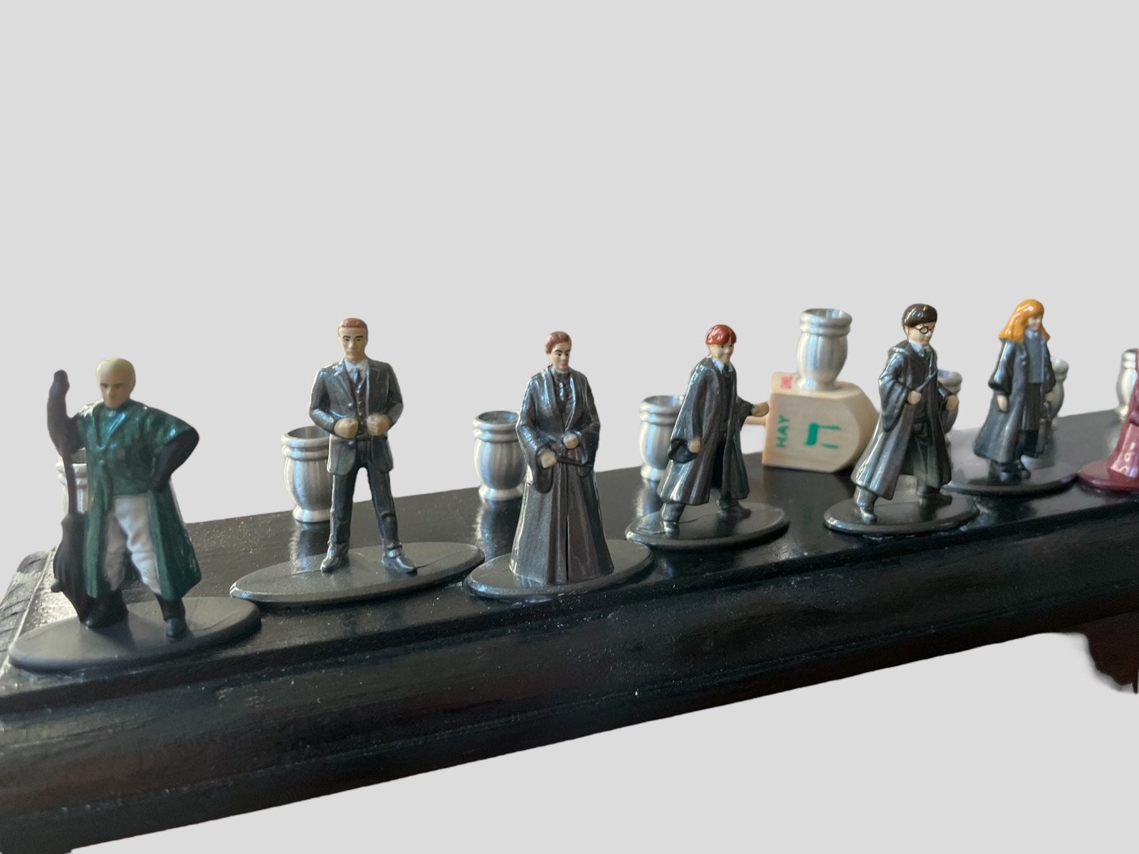 Figures are Draco Malfoy, Percy Weasley, Prof. McGonagall, Ron, Harry, Hermione, Dumbledore, Arthur Weasley and Marcus Flint