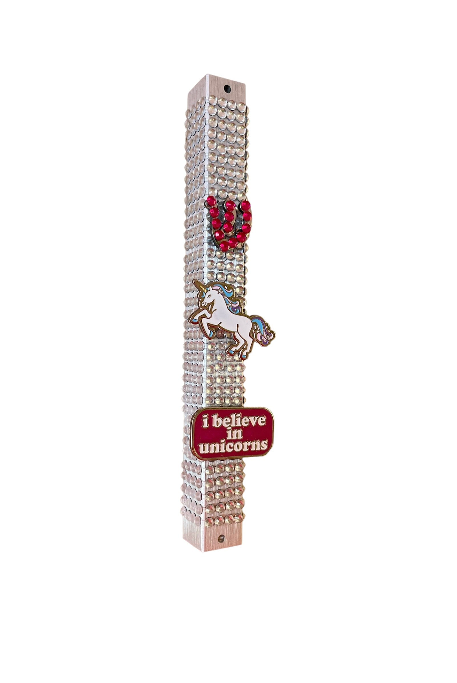 I Believe in Unicorns Sparkly Rhinestone Mezuzah Case